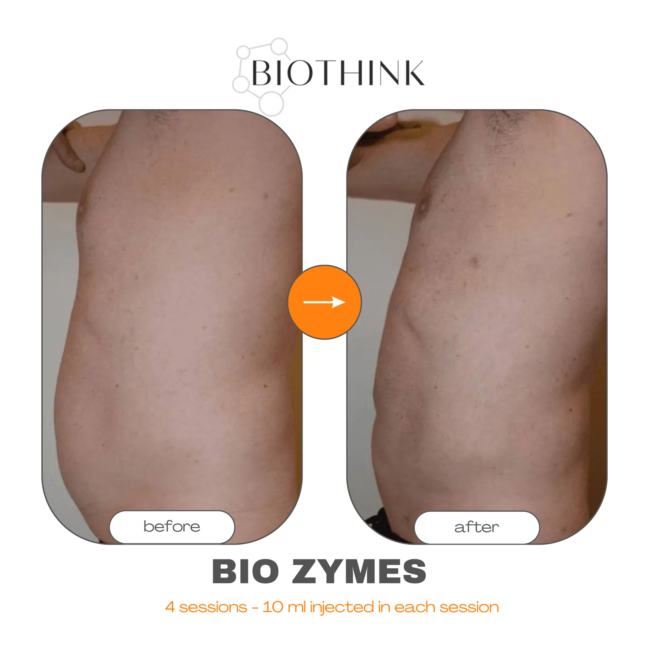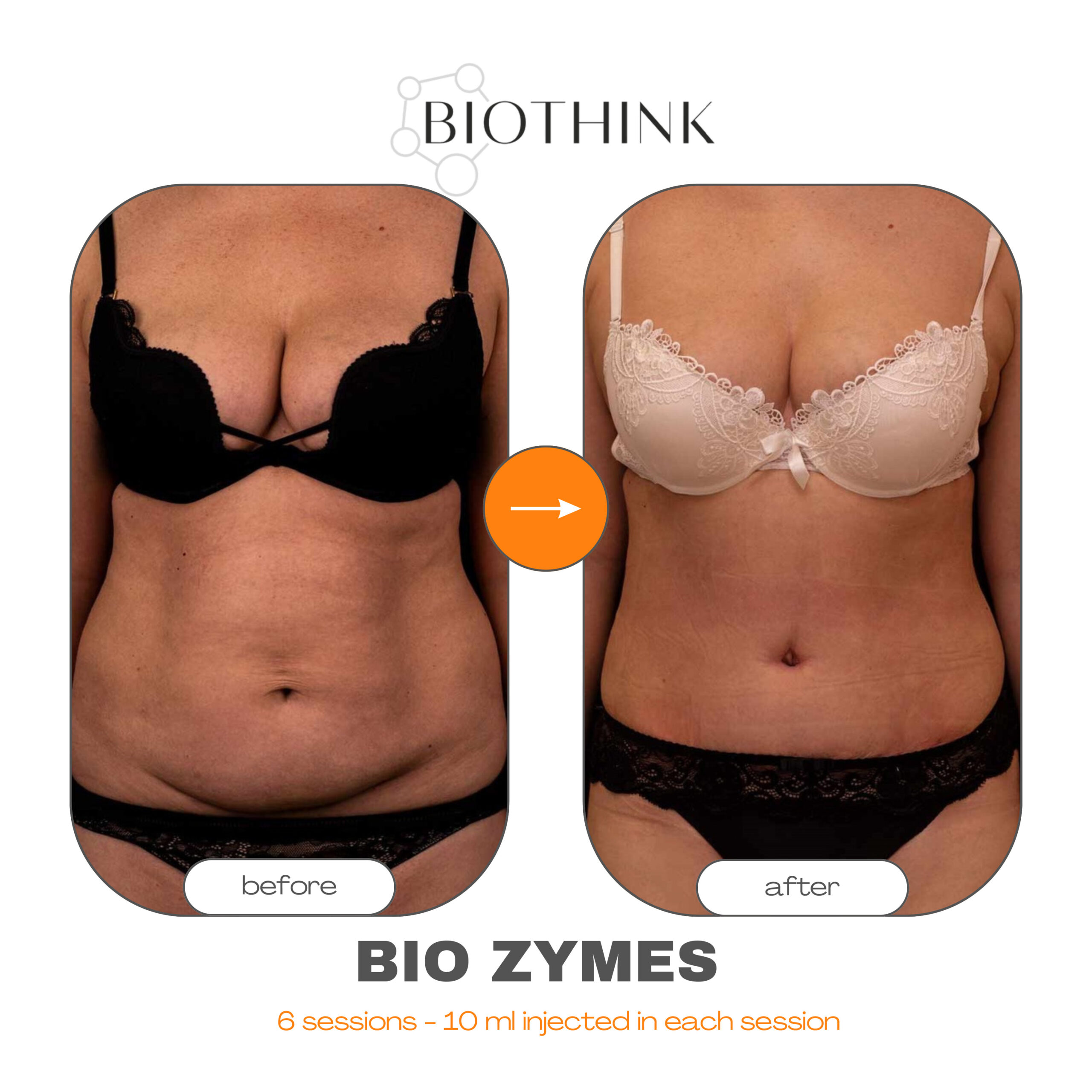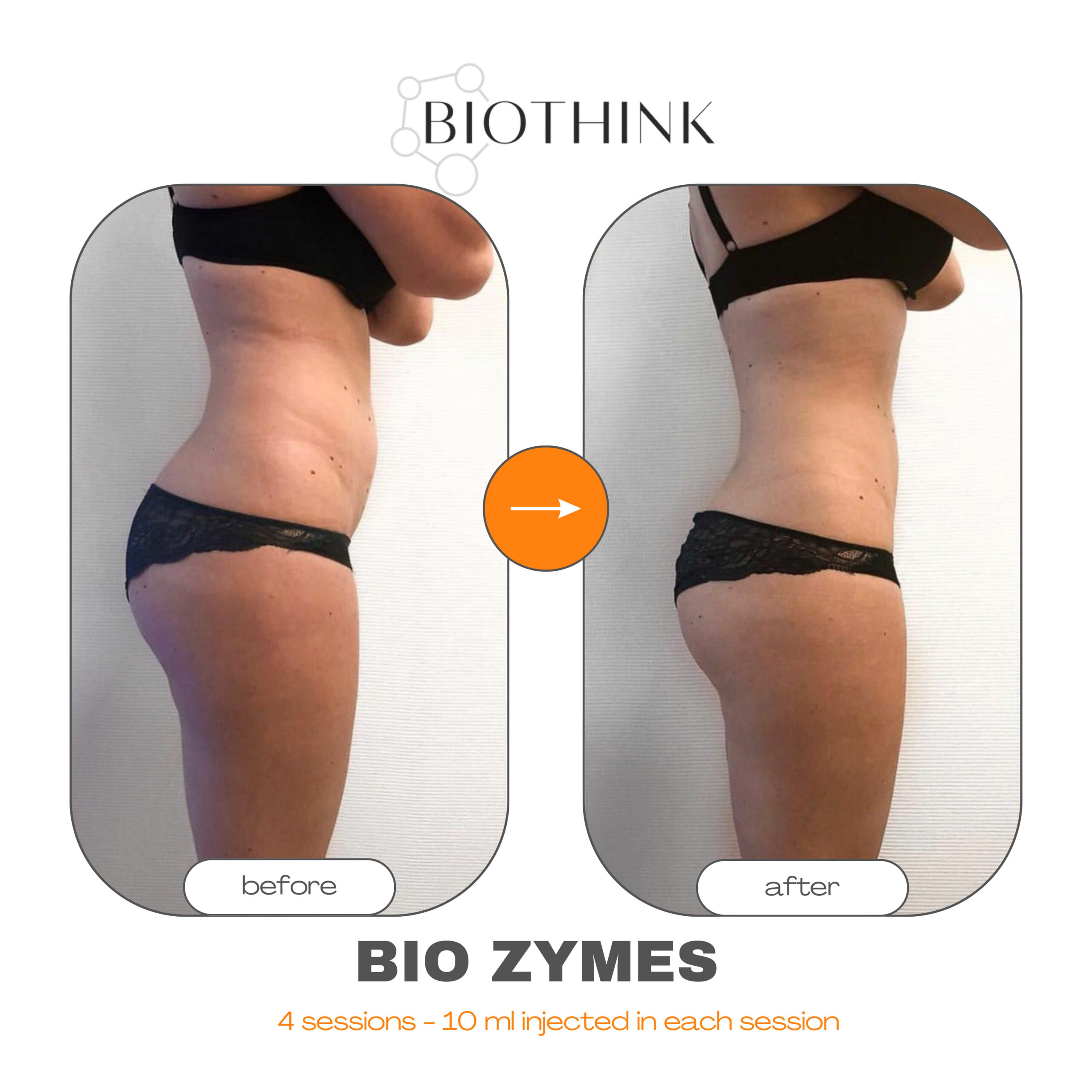 Enzymbaserad lösning som riktar sig mot lokala fettdepåer och förbättrar vävnadens struktur.