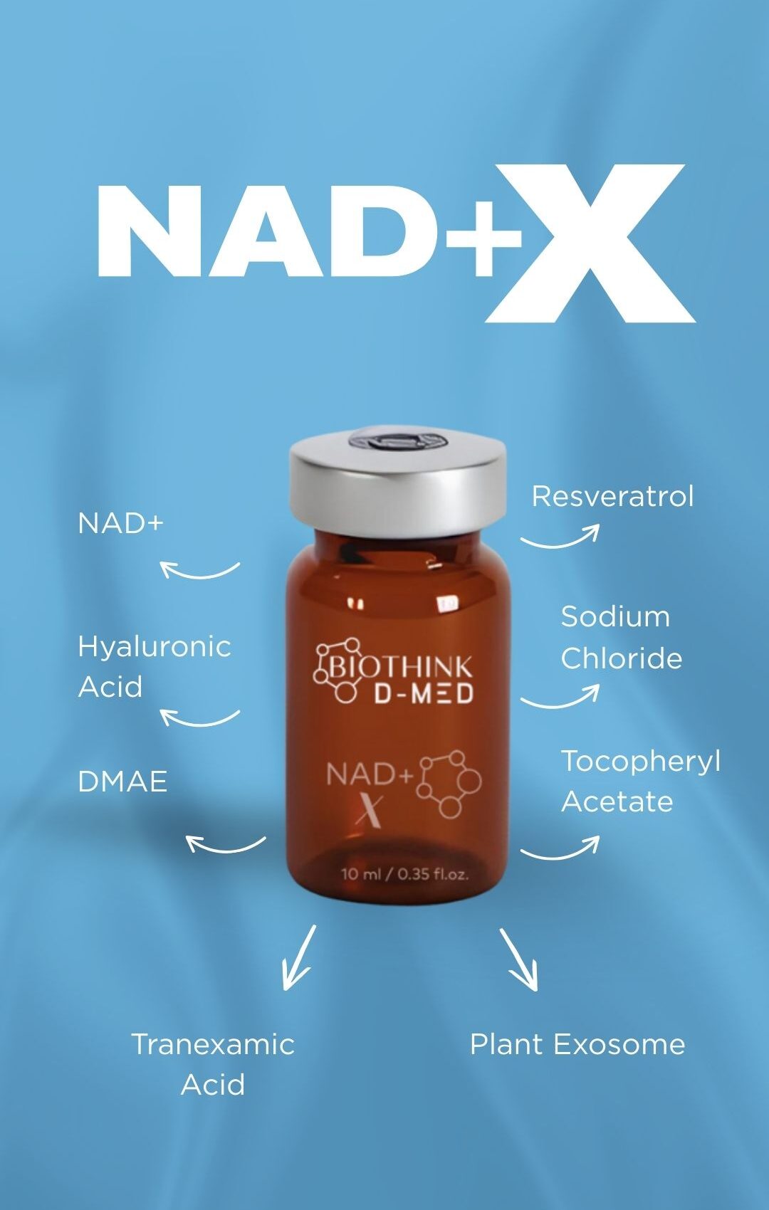 Avancerad skinbooster baserad på NAD+ som stödjer cellernas energiproduktion, DNA-reparation och hudens regenerativa processer.